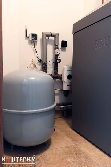 Akumulační nádrž 750 l: Zajišťuje dlouhodobou tepelnou rezervu, při plném natopení vydrží zásobovat dům až 2 dny i v zimním období.